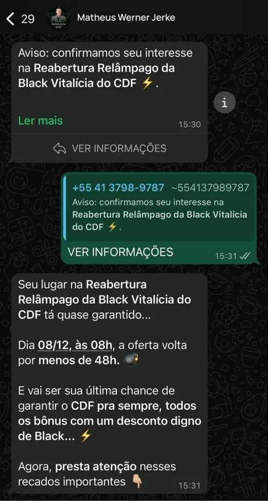 Ao confirmar sua inscrição e entrar no Grupo de Interessados, você receberá uma mensagem automática do nosso número oficial.