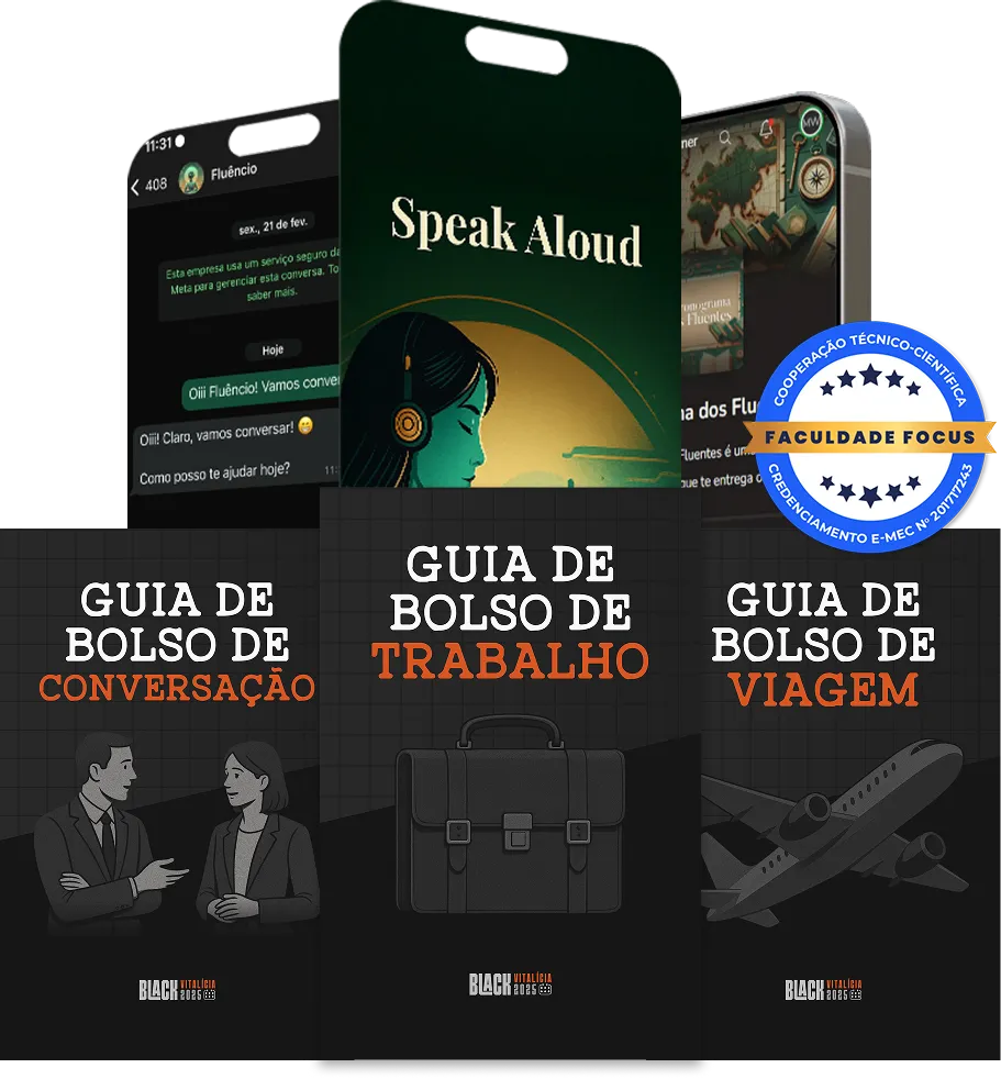 A Black Vitalícia de Alunos é uma oferta exclusiva de alunos, que dá acesso vitalício ao Cronograma dos Fluentes e a todos os meus cursos de inglês, lançados e futuros — incluindo 3 aulas de conversação por semana, material físico exclusivo e uma série de bônus sem custo adicional.