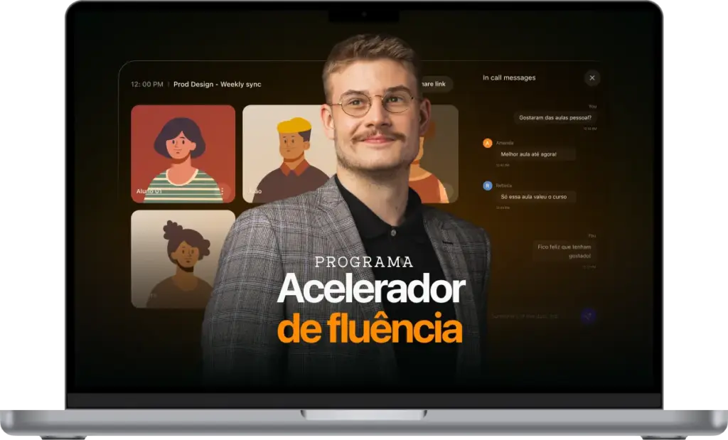 Você terá duas aulas por semana durante 1 ano, em grupos pequenos de até 5 pessoas, conduzidas por um professor que vai te ajudar a destravar o inglês falado em situações reais. As conversas são adaptadas ao seu nível e focadas em prática, não em teoria.