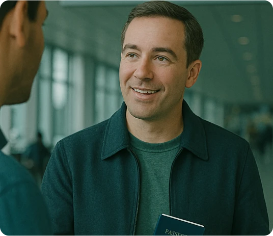 Ela faz o inglês que você já sabe sumir da sua cabeça bem na hora que você mais precisa — como no aeroporto, no hotel ou no restaurante.